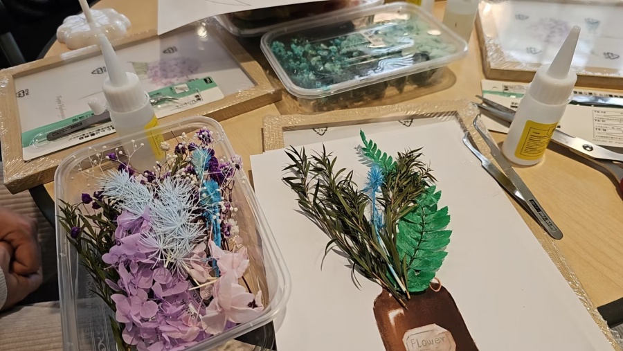 女職工們以永生花為筆,將春日浪漫定格于方寸之間。挑選干花素材、構思畫面層次、粘貼封存時光,原本素凈的木制相框逐漸被賦予獨特生命力。活動現場笑語盈盈,一件件作品成為專屬節日的藝術紀念。